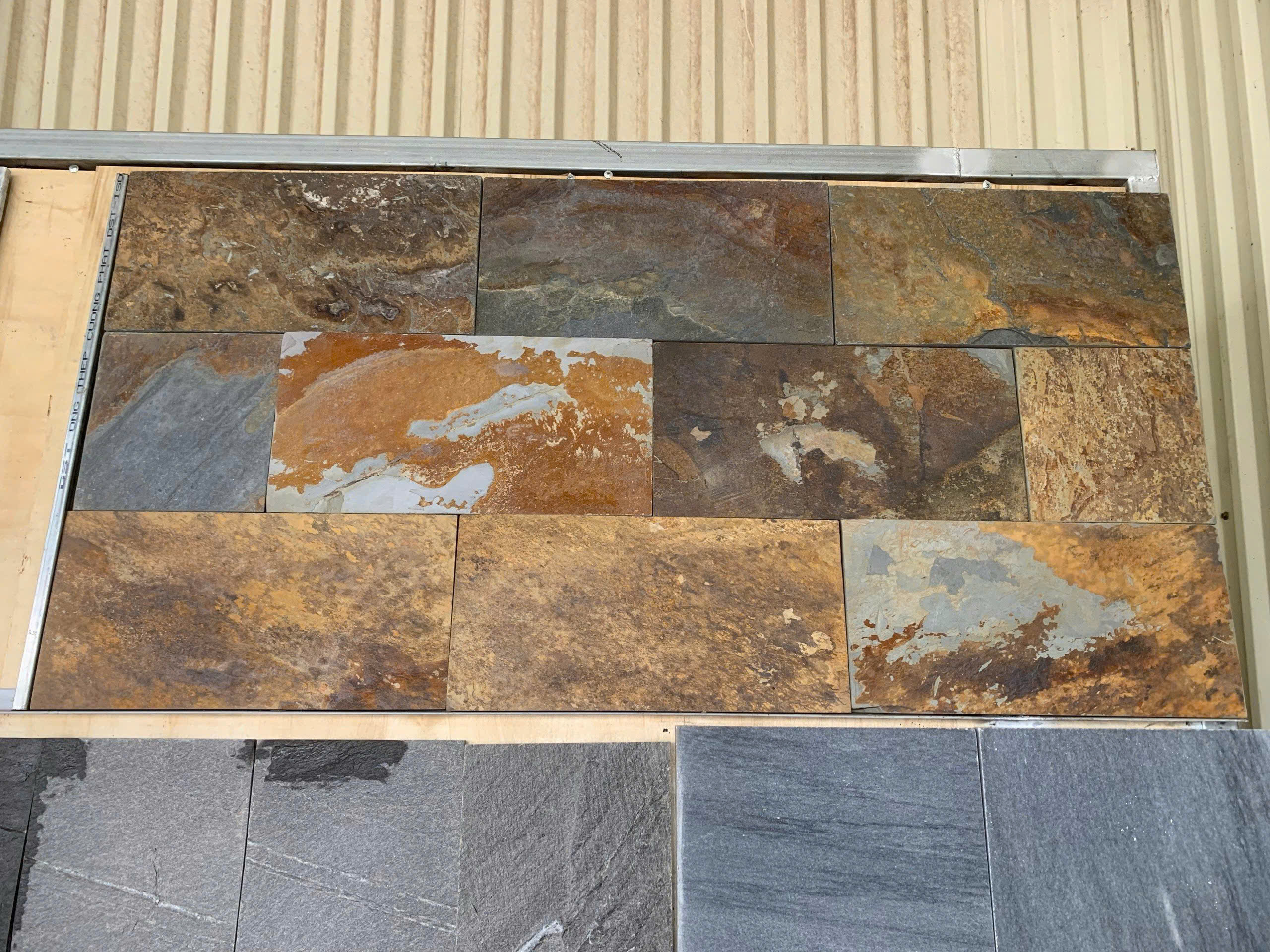 Chất liệu: Thường là đá tự nhiên, như đá Slate (đá chẻ) đa sắc Lai Châu.