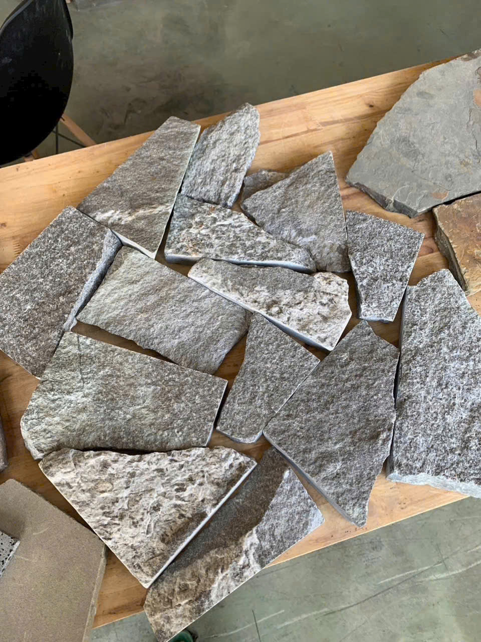 Bề mặt: Thường là bề mặt chẻ thô, gồ ghề, không mài nhẵn, giữ nguyên vẻ đẹp tự nhiên của đá.