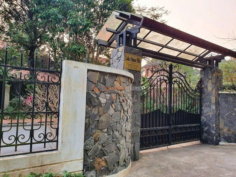 Ốp mặt tiền, trụ cổng, tường rào: Tạo điểm nhấn mạnh mẽ, sang trọng và độc đáo cho tổng thể kiến trúc.