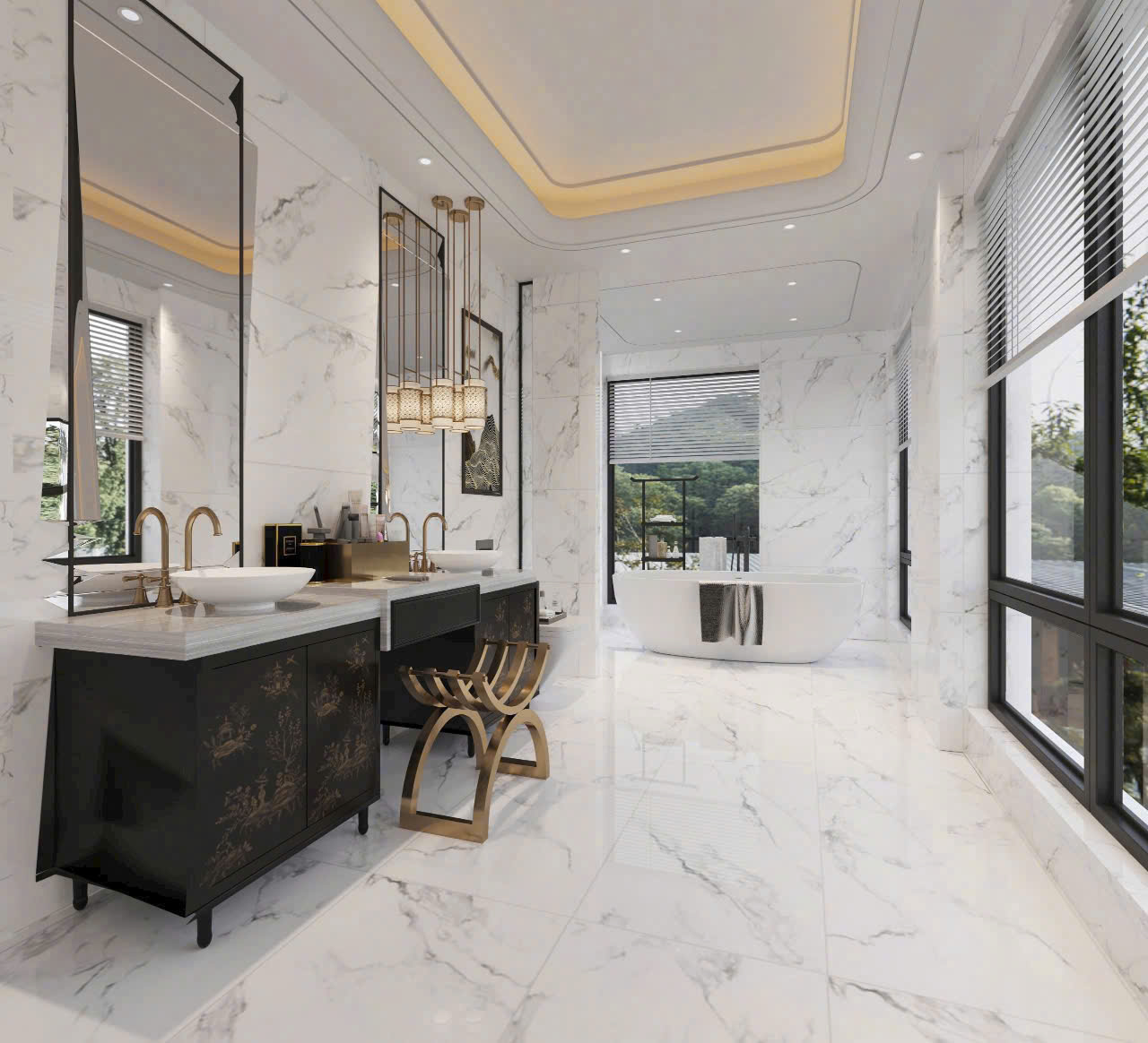 Độ Bền Cao: Xương gạch Porcelain được nung ở nhiệt độ cao (khoảng 1200oC), cho độ cứng tuyệt vời và khả năng chịu lực cực tốt, phù hợp cho cả khu vực có mật độ đi lại cao.