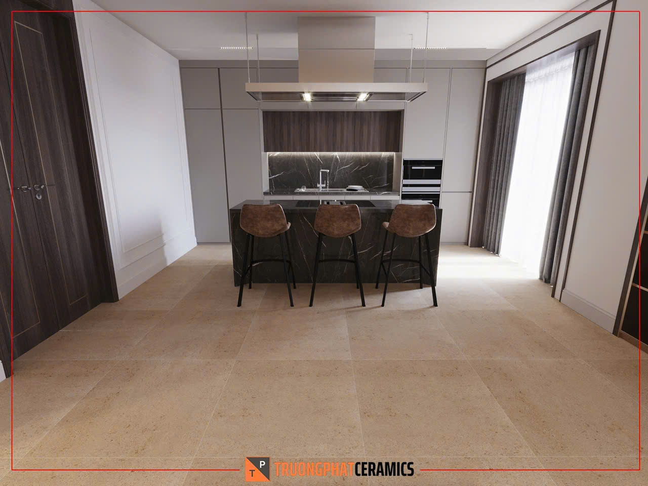 Kích thước: Gạch có kích thước lớn 80×80 cm, giúp tạo cảm giác không gian rộng rãi, thoáng đãng và giảm thiểu số lượng mạch vữa, mang lại vẻ liền mạch cho bề mặt.