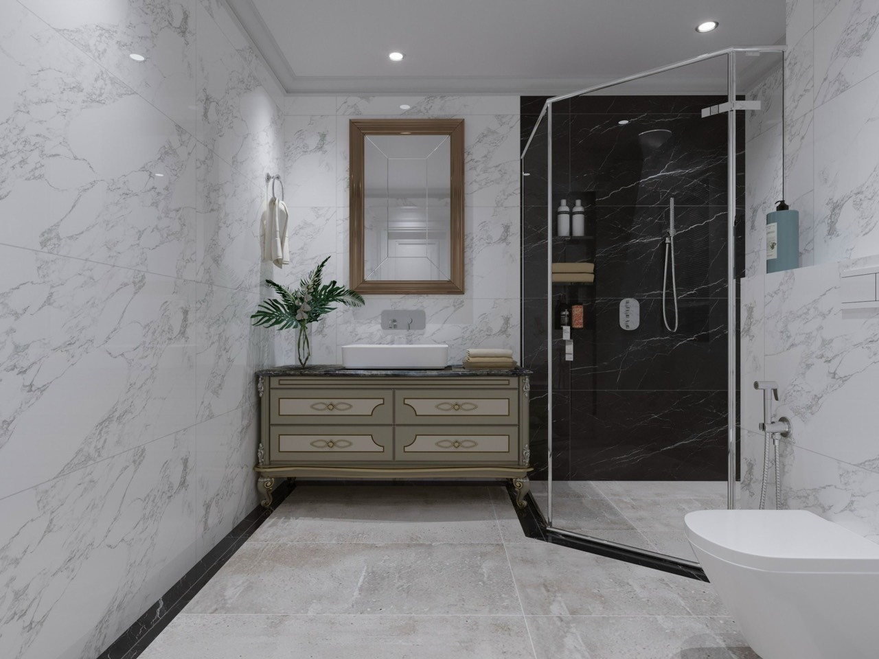 Thẩm mỹ cao: Họa tiết vân đá (vân mây) tự nhiên trên nền trắng giúp không gian trở nên hiện đại, sáng sủa và thanh lịch.