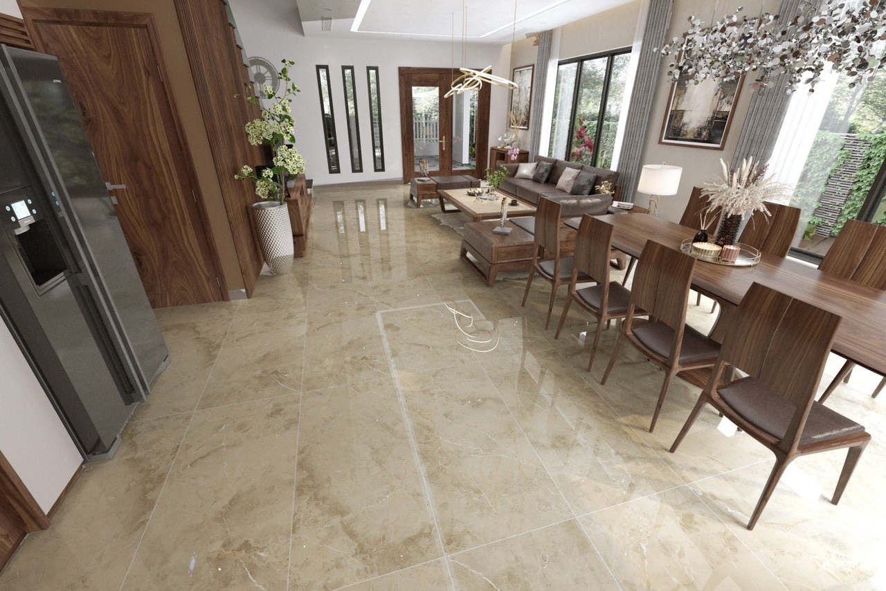 Mặt bàn/Bếp: Nhờ kích thước lớn, gạch có thể dùng để ốp mặt bàn ăn hoặc bàn bếp để giảm mối nối.