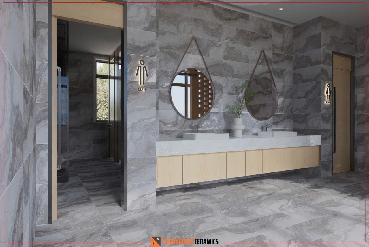 Xương gạch: Porcelain. Gạch Porcelain có độ cứng cao, khả năng chịu lực tốt và chống thấm nước hiệu quả, đảm bảo độ bền cho công trình.