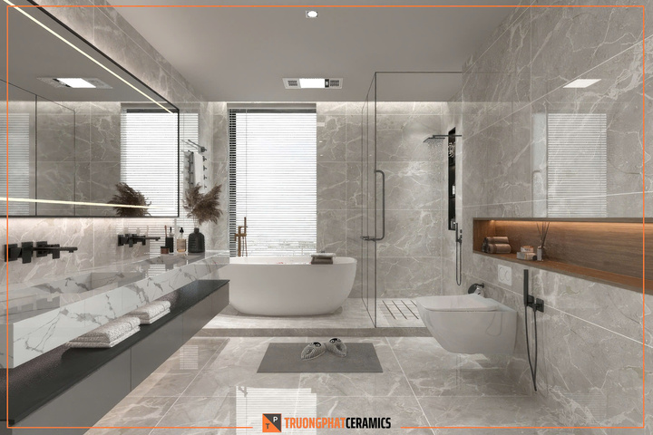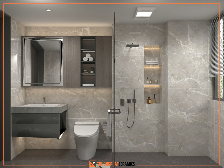 Kích thước đa dạng: Phổ biến nhất là khổ $60 \times 60$ cm, $80 \times 80$ cm hoặc $60 \times 120$ cm, phù hợp cho cả lát nền và ốp tường.